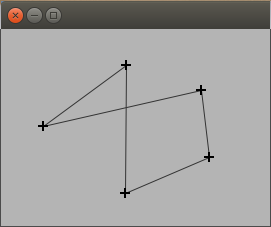 Les algorithmes de TSP que nous allons coder consisteront à ré-ordonner la liste de points de la meilleure manière possible. Afin de visualiser le résultat de ces algorithmes (comme à la figure ci-dessous), nous redéfinissons la façon dont JBotSim dessine le fond de la topologie en y ajoutant le dessin de l'itinéraire.